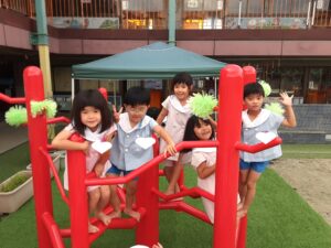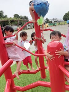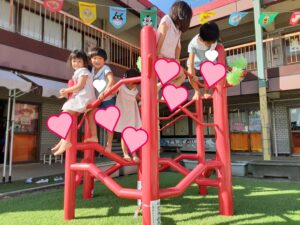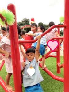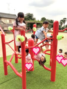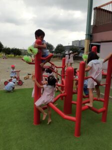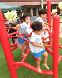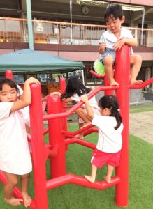 ブログ千秋幼稚園 10月になり・・千秋幼稚園② 暑さが和らぎ、遊具での火傷の心配もなくなってきたので、 新しい遊具でゆっくり遊びました。 再度お約束を聞いた後、いざ! すごい!すごい! これからも、約束を守って楽しくあそぼうね!