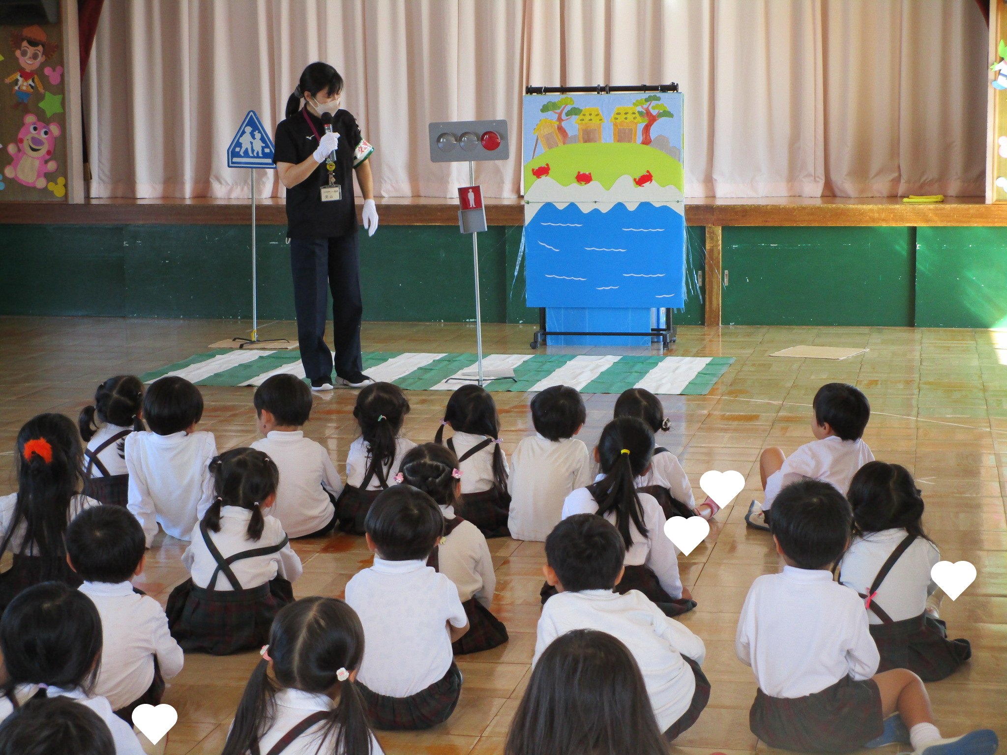 ブログ千秋幼稚園 交通安全教室🚥千秋幼稚園 交通安全教室がありました。 みんな真剣にお話を聞いています。 指導員さんたちもパネルシアターで子供たちに、わかりやすくお話してくださいました。 実際に横断をします。 今日のお話をよく思い出して、交通ルールを守りながら日々過ごしましょうね🚥 指導員の方々、ありがとうございました。