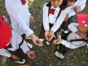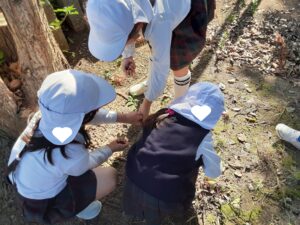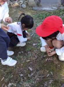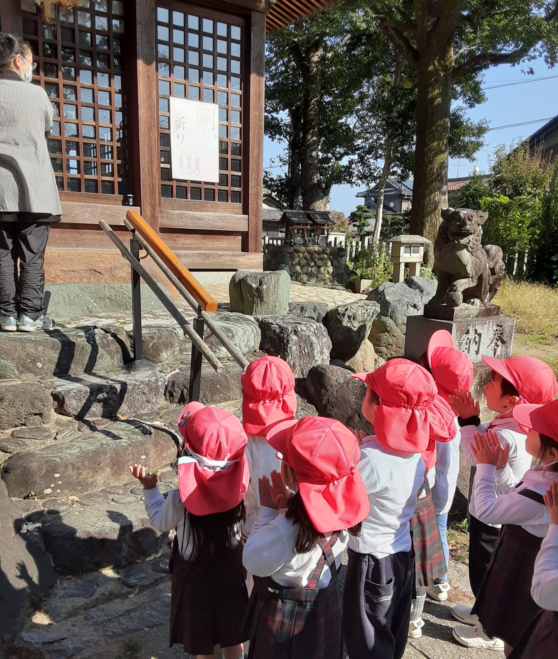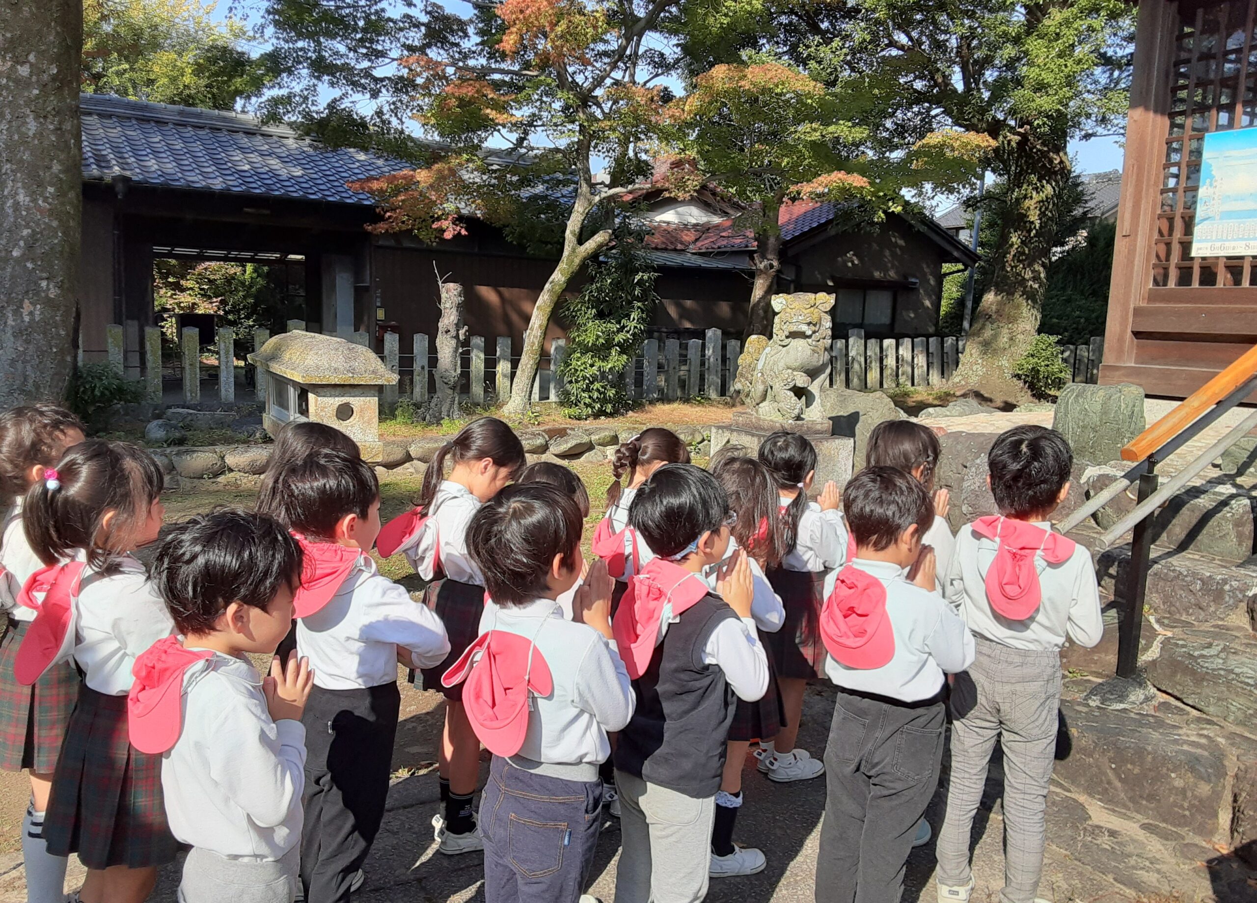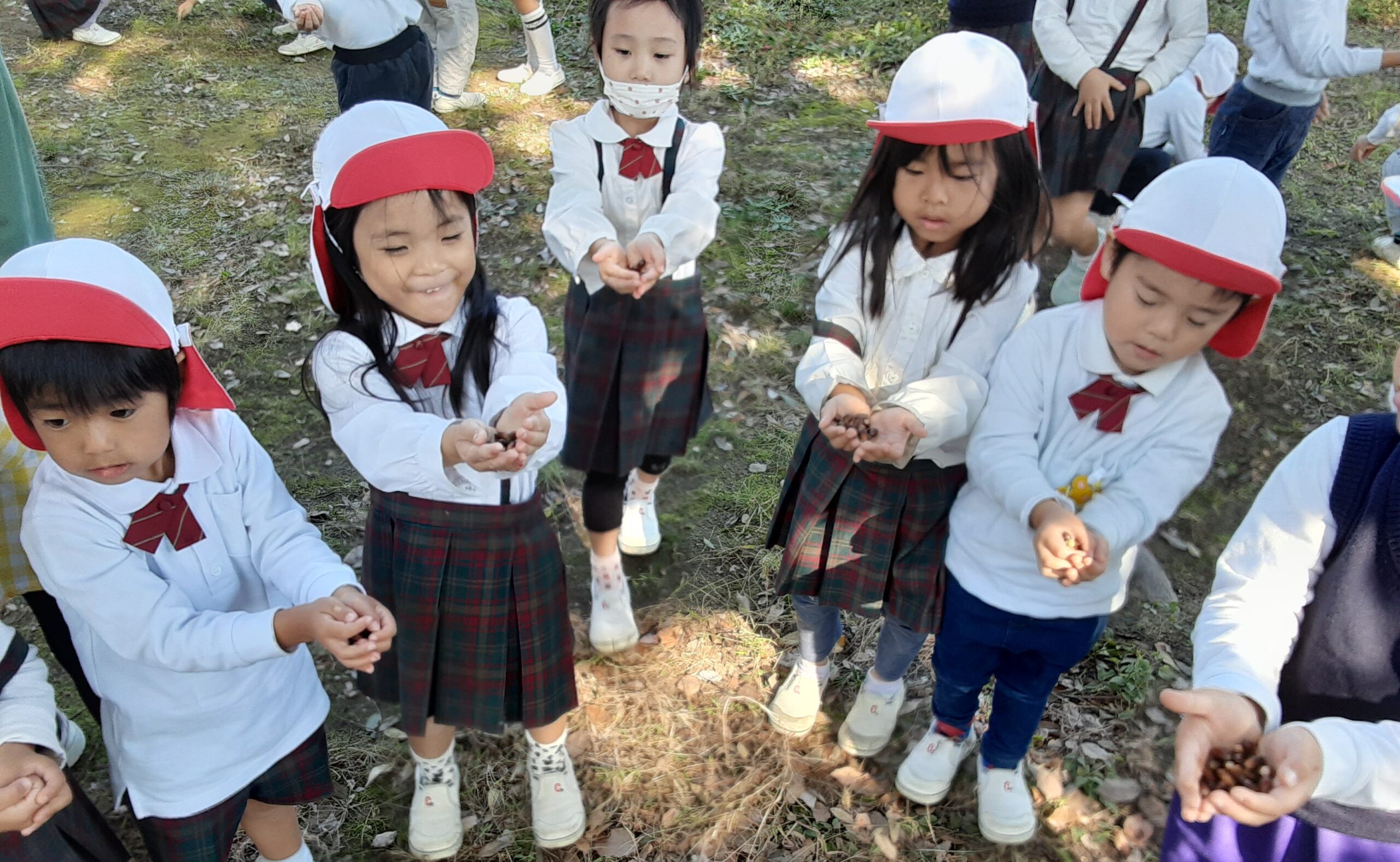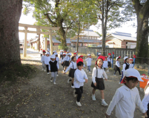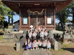 ブログ千秋幼稚園 園内七五三🍭千秋幼稚園 11月7日(金) 園内七五三でした。 神社にお参りに行きましたよ。 自分で制作した七五三の袋を持って・・ 到着。 お参りをします。 年少さんも・・ 七五三おめでとう! お宮で、どんぐり拾いもしましたよ。 ここにもあった! みてみて~。 今日は、七五三のお土産とどんぐりを持ち帰りました♬