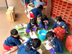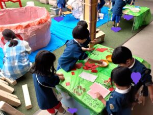 個人作品を終えたこどもたちは、みんなで大きな作品作りを頑張っています!!