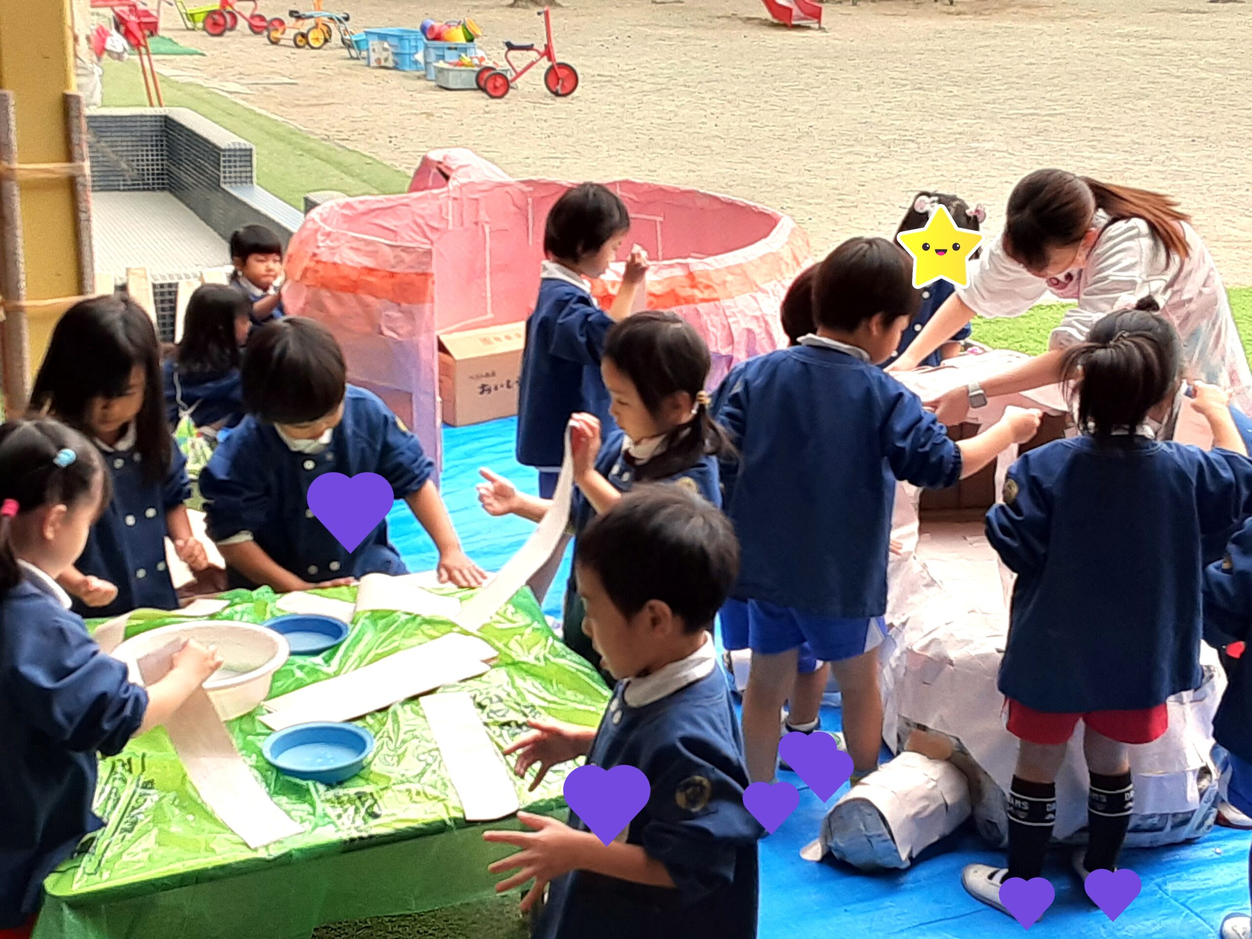 個人作品を終えたこどもたちは、みんなで大きな作品作りを頑張っています!!