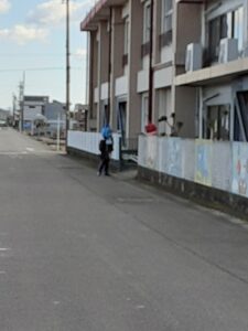 が、勇敢にも自ら線を越えて豆まきをするお友達も。