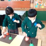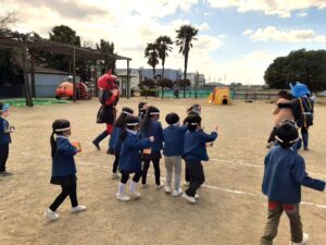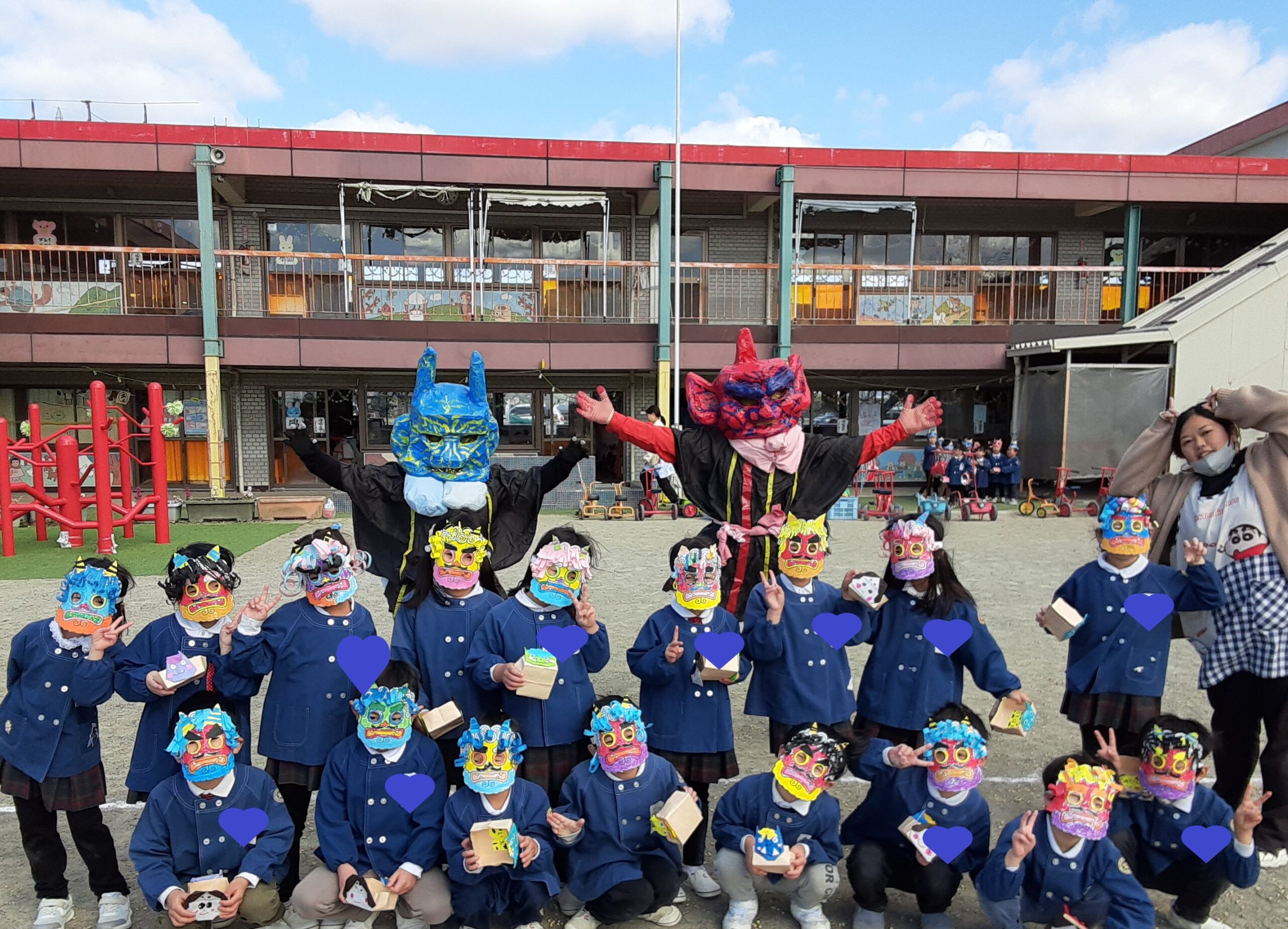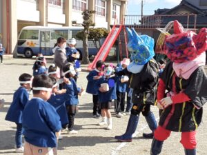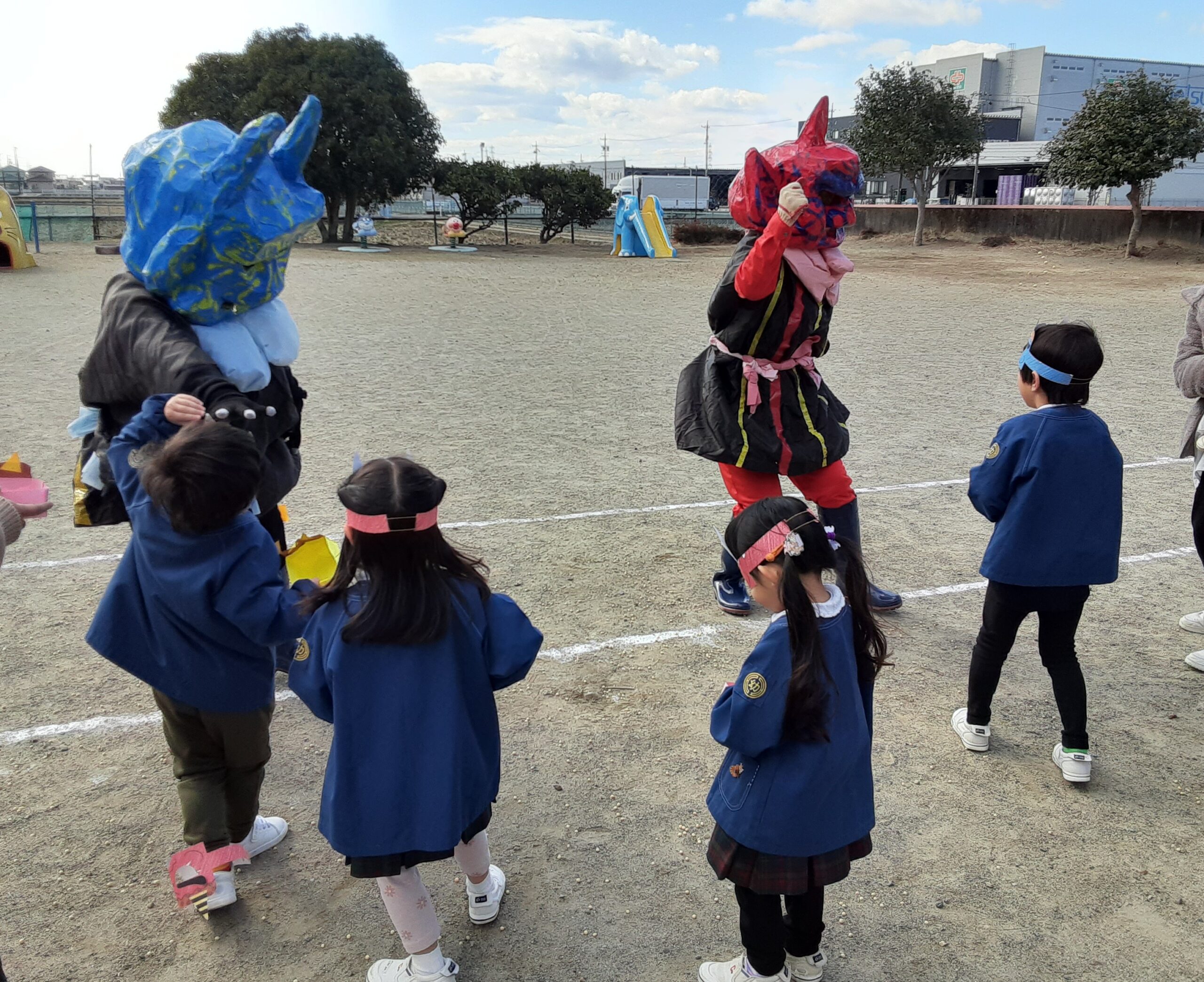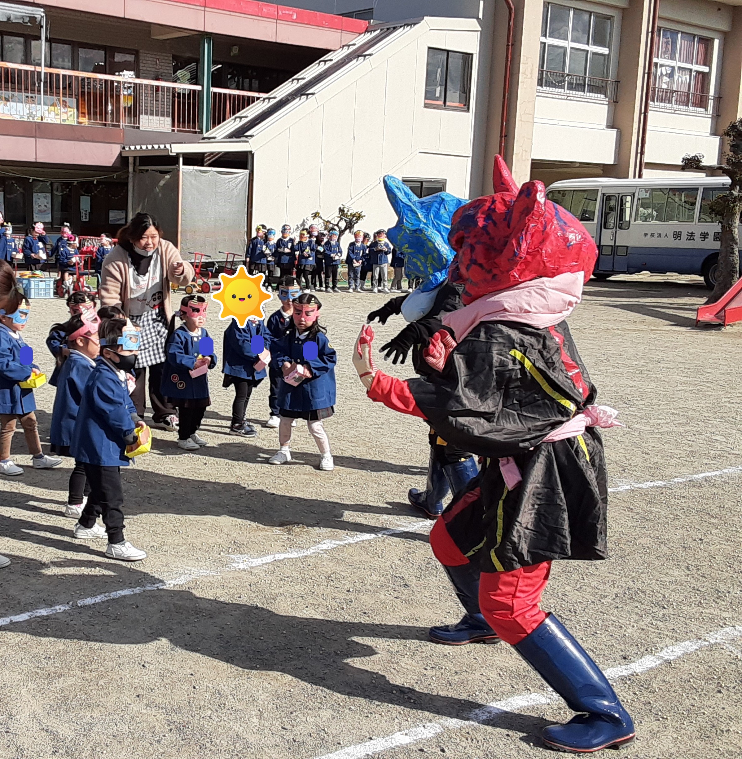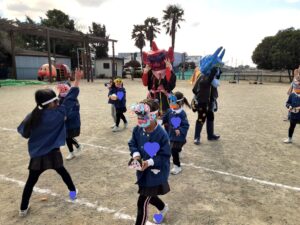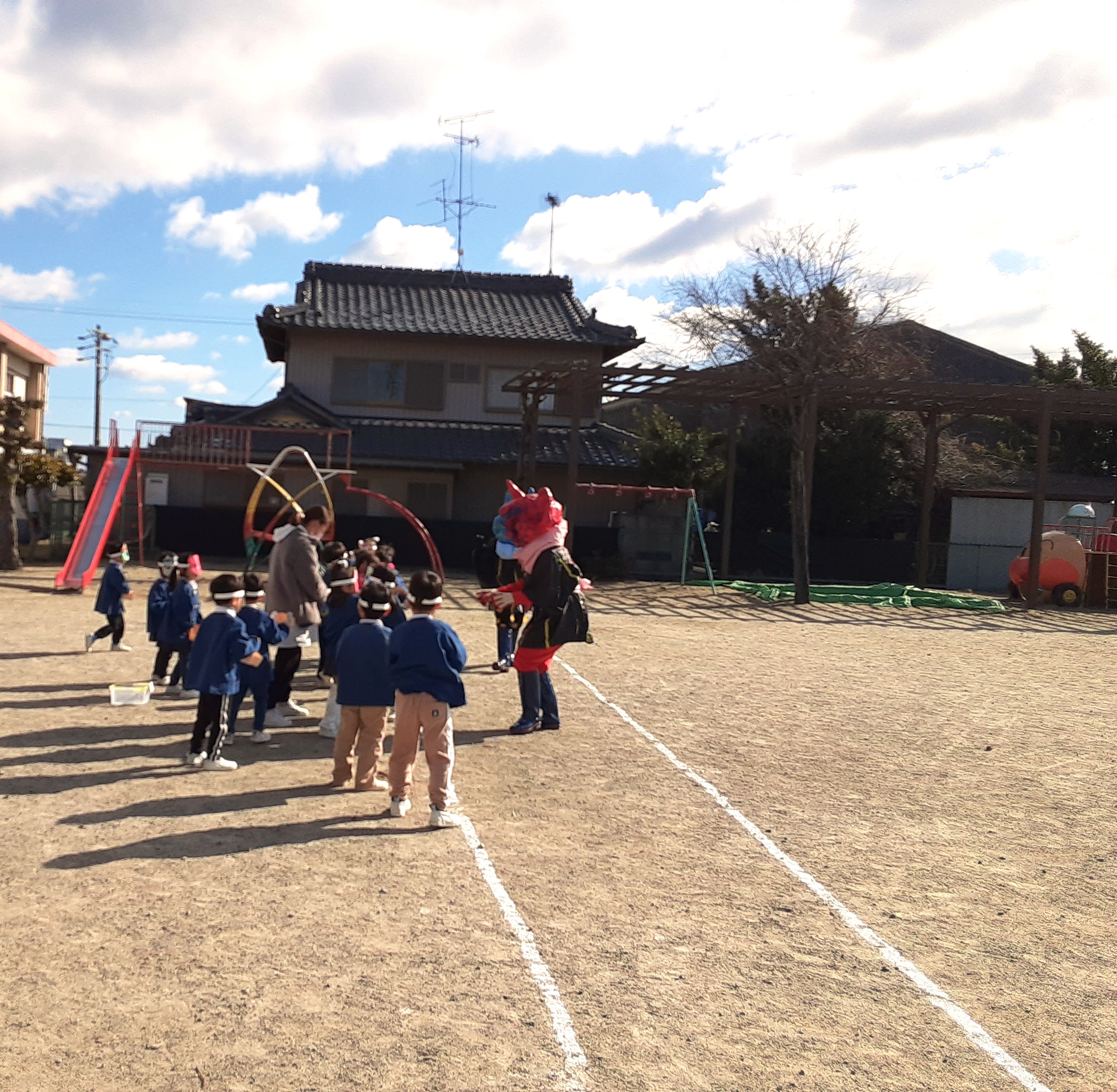 子ども達は、幼稚園に来る鬼を、とにかく豆で追い払いたいという気持ちが強いみたいですが・・。