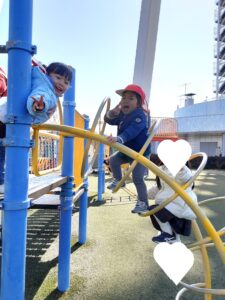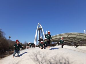 ブログ千秋幼稚園 3月②園外保育🚌千秋幼稚園 今日は、年少さんと年中さんが園外保育🚌に行きました!! リュックサック🎒を持って、バス🚌に乗って138タワーへ! 楽しみ~🎵 ルールを守って・・・ いっぱい遊びます! 年中さんはフワフワドームも楽しみました♬ ずっと跳んでいます・・・。 沢山遊んだ後は・・ お家の方が作ってくれた美味しいお弁当🍱タイム💖 全力で遊んで、帰りのバスではみんなぐっすり眠っていましたね。 けがもなく、元気に過ごせた1日でしたね。 またみんなで行こうね!
