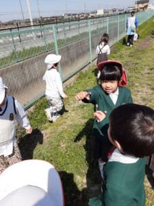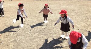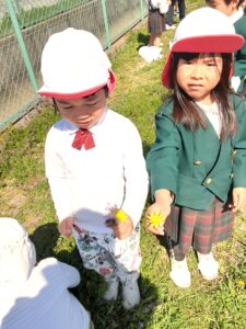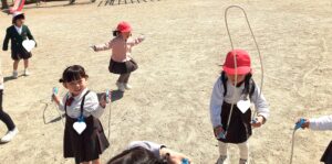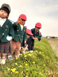 ブログ千秋幼稚園 3月③お散歩&なわとび🌺千秋幼稚園 ずっと年長さんや年中さんの縄跳びを見ていた年少さん。 私たち、僕たちも、早く縄跳びを跳べるようになりたい!!と 頑張っていました👏 そして・・・。 年少さんも10回、20回と跳べるようになった子が何人かいます👏 そして、この日はとても暖かい日🌞 幼稚園のまわりを、お散歩しました。 上手に並んで歩けるようになりました♬ つくしや、たんぽぽを見つけたね。 みてみて~。 たくさん、春🌺を見つけました。 楽しいお散歩🦋でしたね🍃