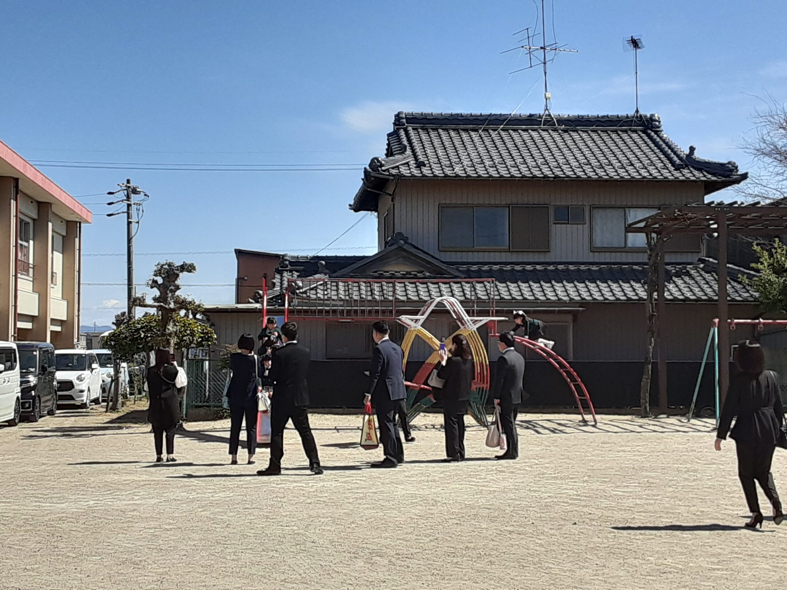 たくさん遊んだ千秋幼稚園園庭から・・送り出しです。