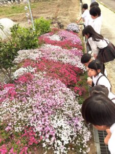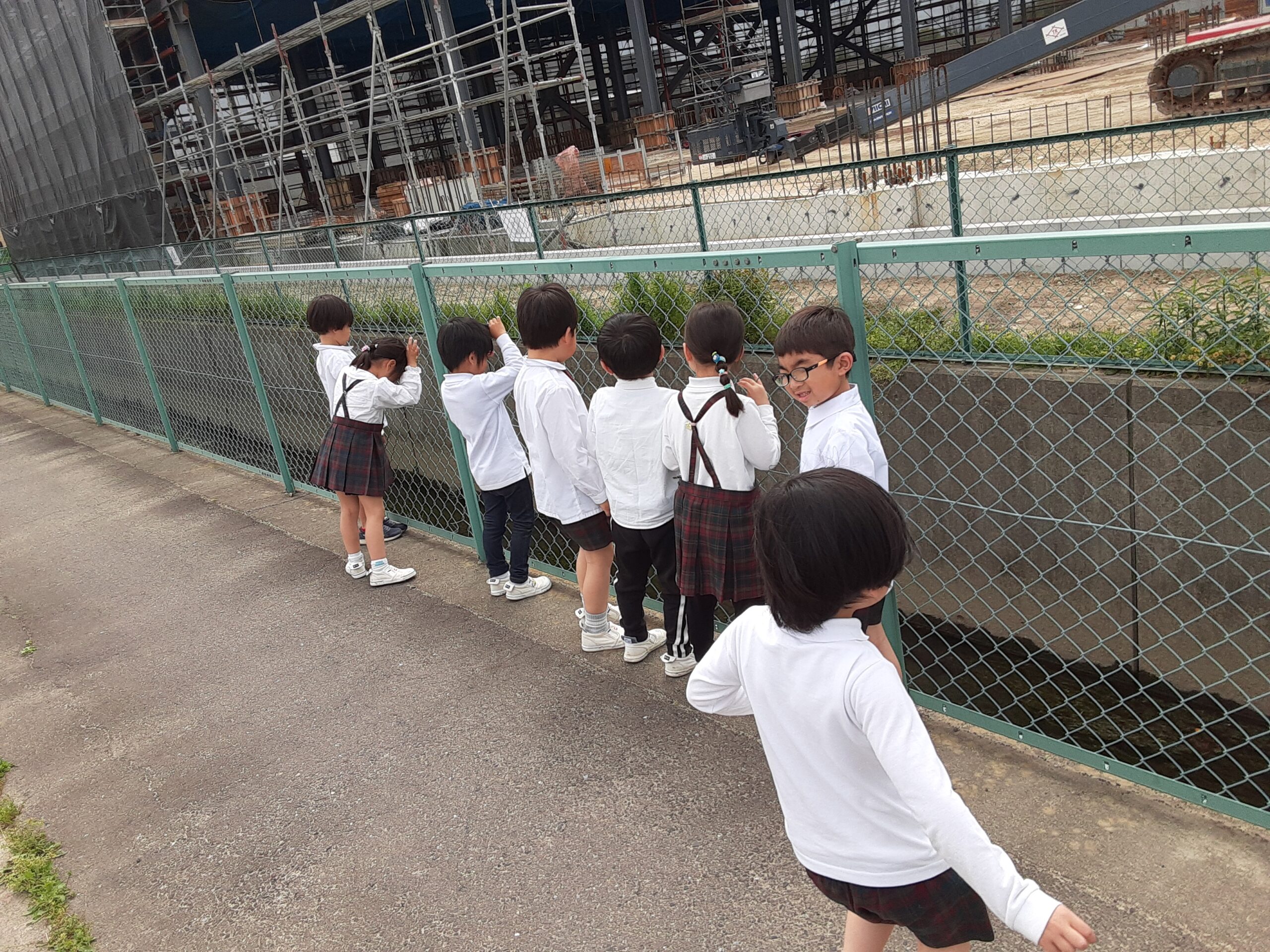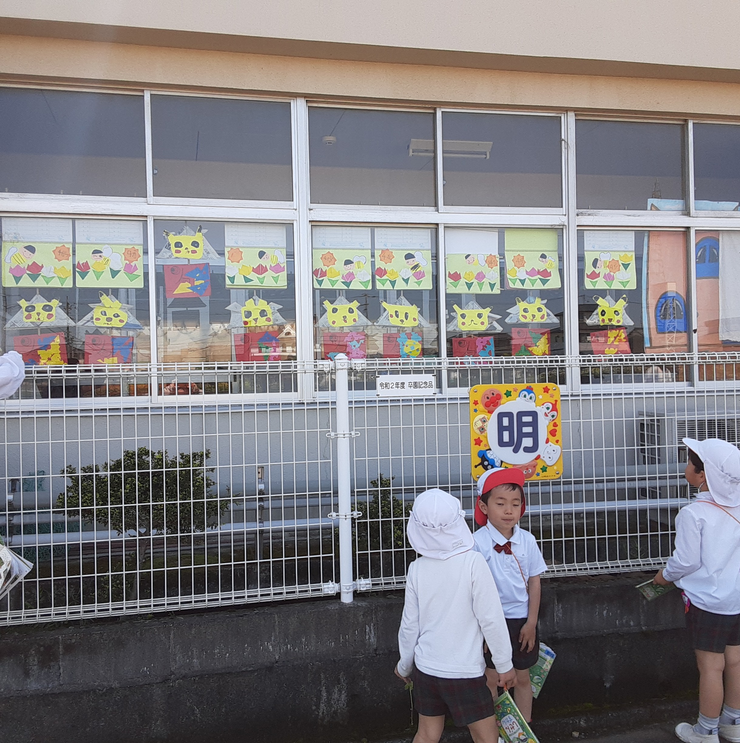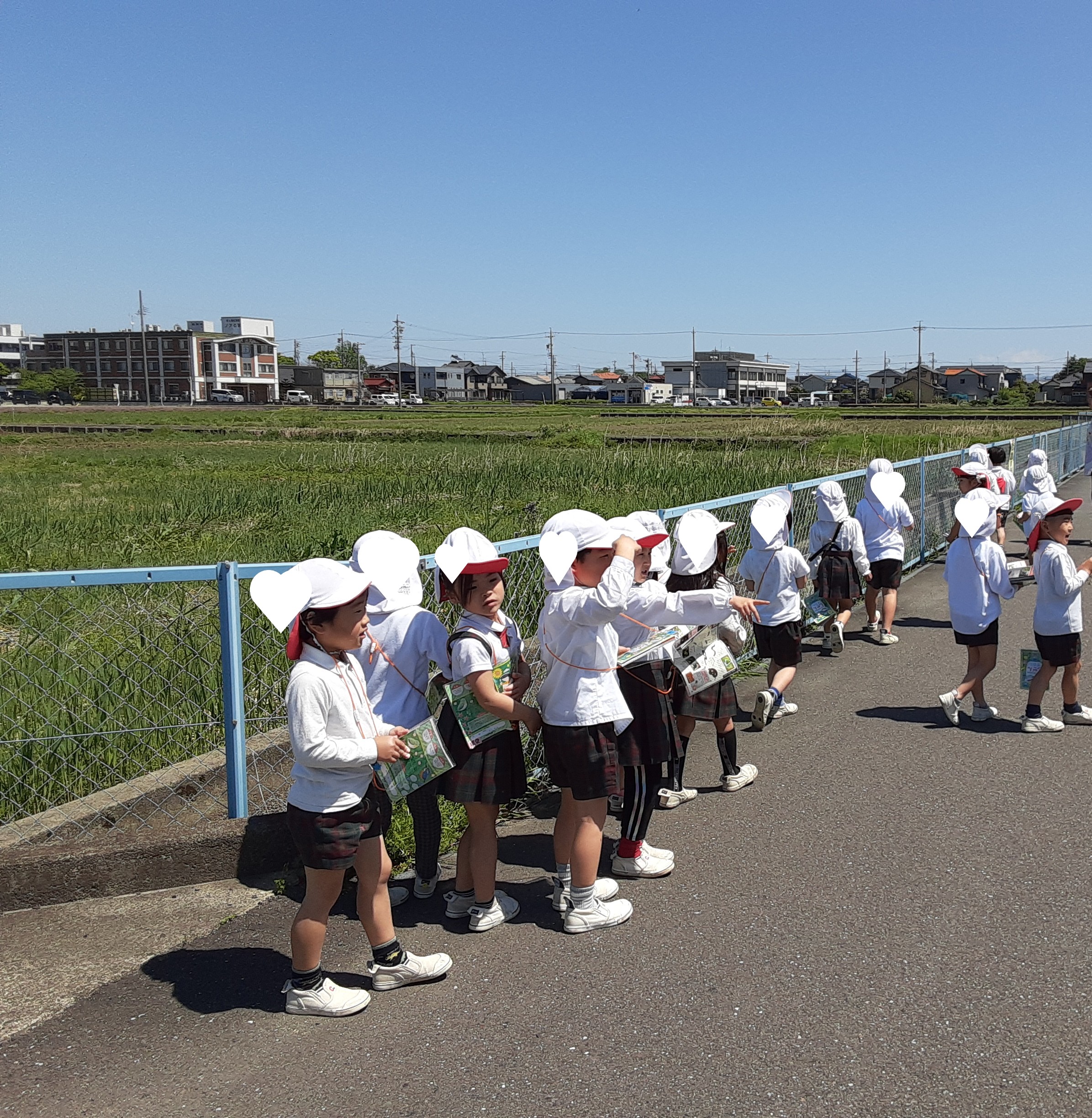 ブログ千秋幼稚園 千秋幼稚園の周りを🌺 春らしいとても暖かい日・・。 図鑑を持って、お散歩に出掛けました。 昆虫、草花。 興味津々です。 キャーッ!!と驚いたり、おおっ~!!となったり。 れんげ畑の前で・・。 空を見て・・ 近くに芝桜がきれいに咲いていました。 きれいだね。 鯉がいる~! 発見だらけで、忙しい子ども達。 年長さんの部屋の前の道。 自分の制作を飾ってあるのを見つけました🎵 たのしいお散歩でした!