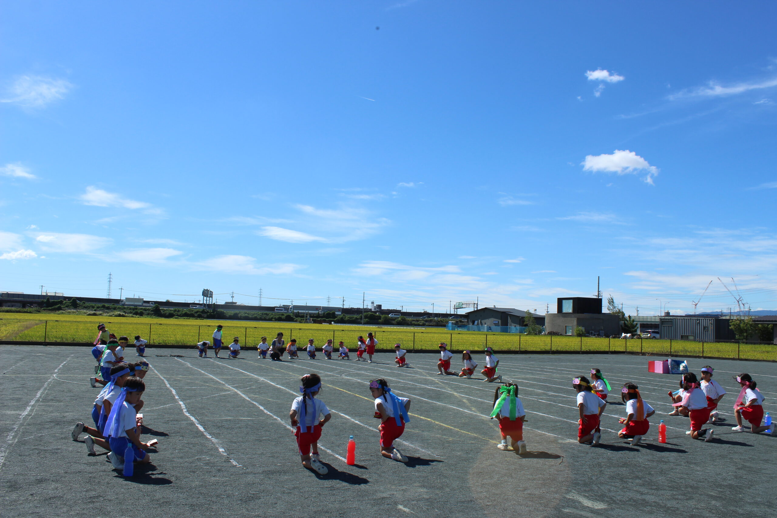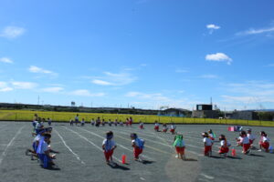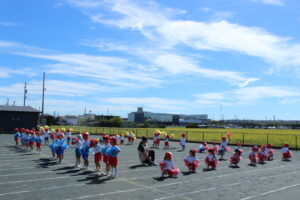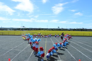 ブログ大和東幼稚園 🏳🌈総合練習🧢 10月6日(月) 今日は、昨日までとは違い とても暑い🌞一日になりました。 🎵・・🎶・・♪ そんな中子ども達は・・・ 運動会の総合練習を行いました。 みんな真剣に・・・ 元気一杯頑張ることができました。 みんな✨✨の笑顔です。 あとは・・・ 当日まで楽しく頑張りましょう。 先生たちも・・・頑張ります。