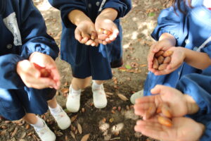 ブログ大和東幼稚園 🌞どんぐり拾いに🎵 10月20日(月) 今日は、彦田公園に どんぐり拾いに出かけました。 子ども達は・・・ バスを降りてすぐに どんぐりを拾いをはじめ・・・ 黙々と・・・ひろって とても楽しんでいました。 たくさん拾ったよ・・・先生!! また、公園にあそびに行きましょう。