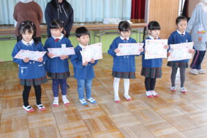 ブログ大和東幼稚園 🎵3学期が始まっています 1月13日(火) 今日も寒い一日になりました。 先週水曜日から 3学期がスタートしています。 今学期も子ども達と笑顔で 楽しく頑張っていきます。 どうぞよろしくお願い致します。 先週は、始業式にはじまり 各学年 歌留多取り大会を行いました。 そして・・・ 歌留多大会の表彰式をしました。 寒さに負けず・・・ マラソンも頑張っています。
