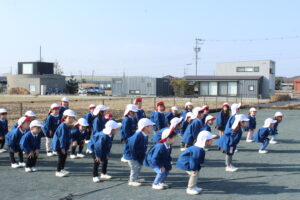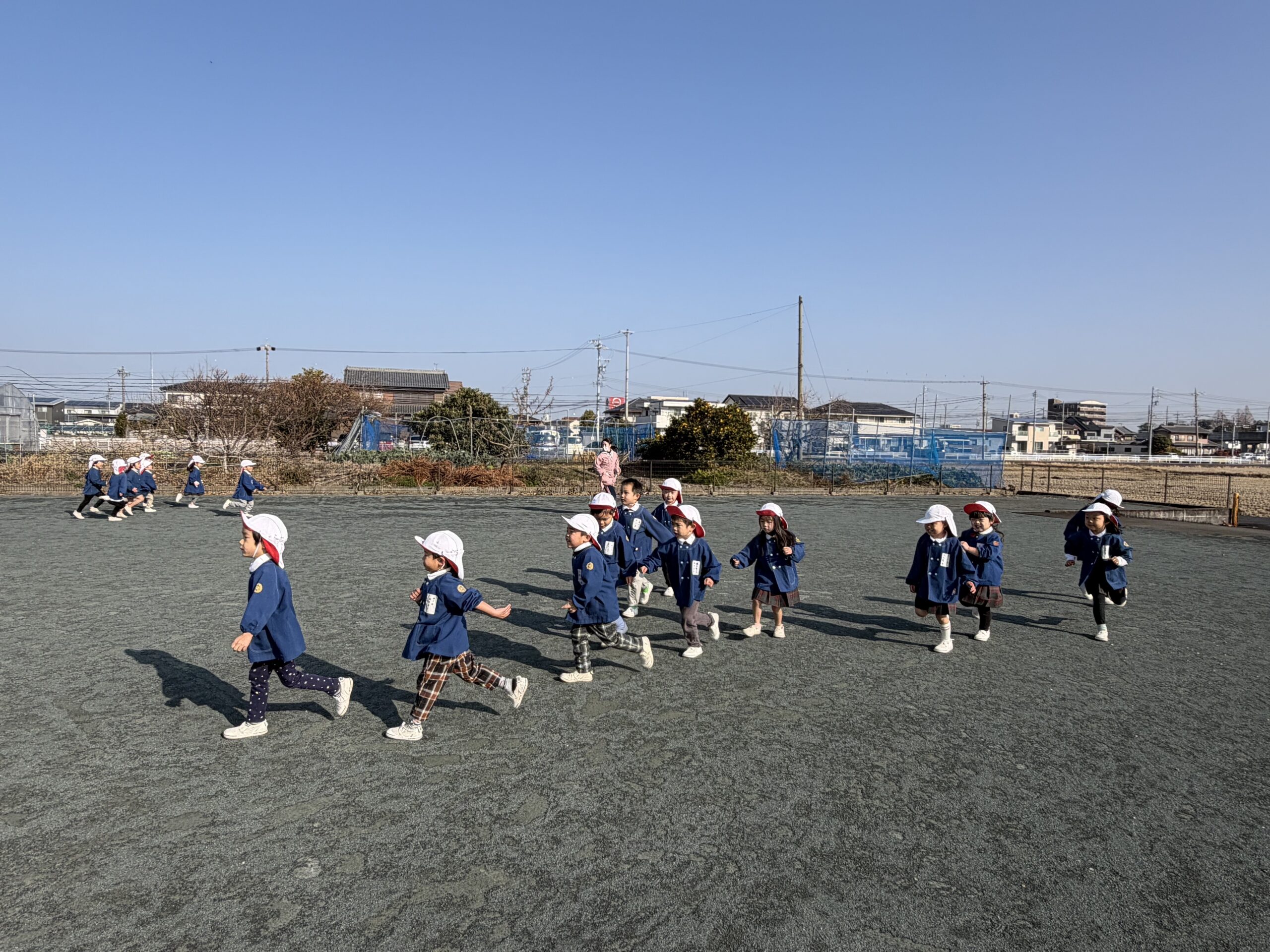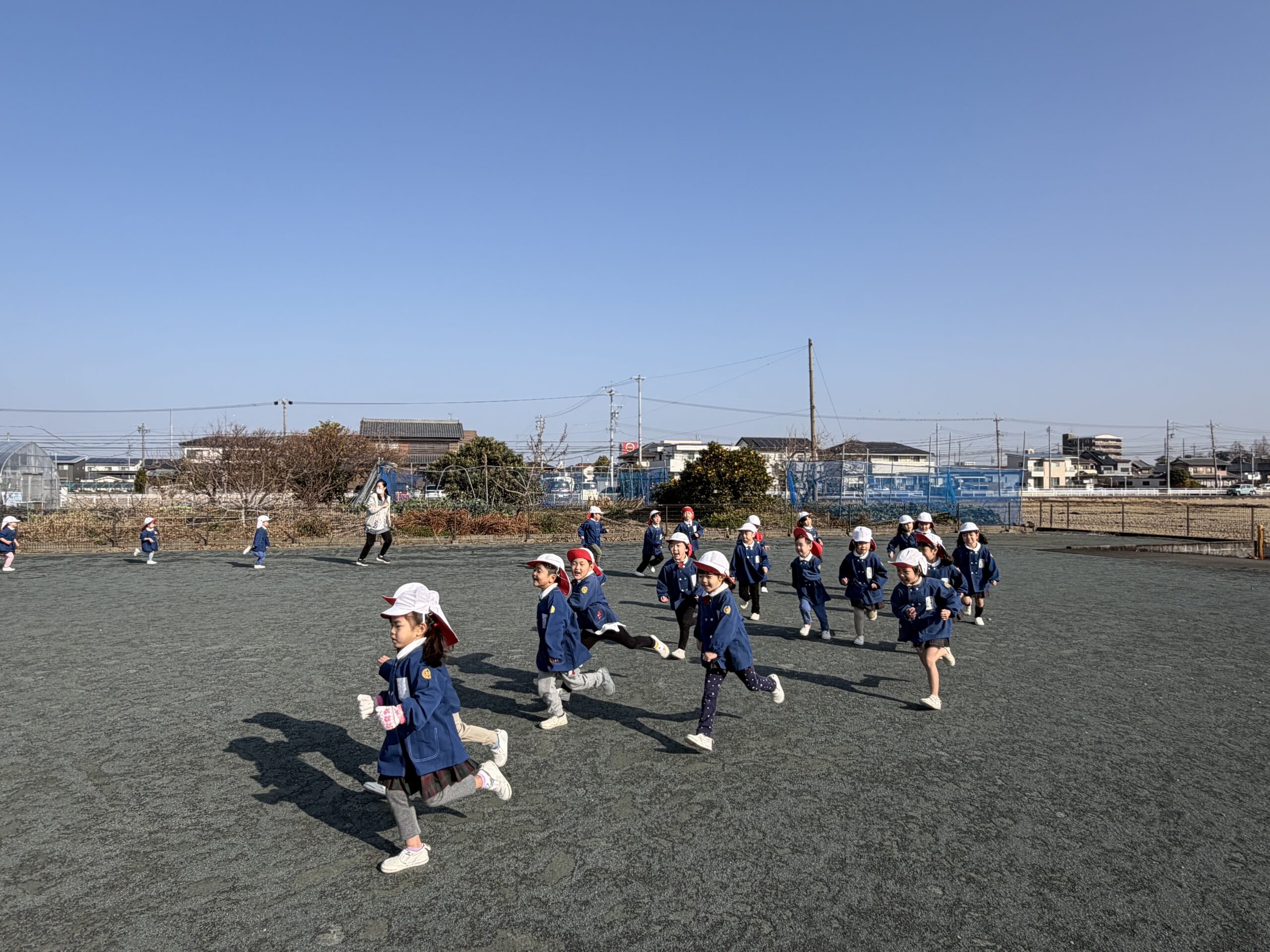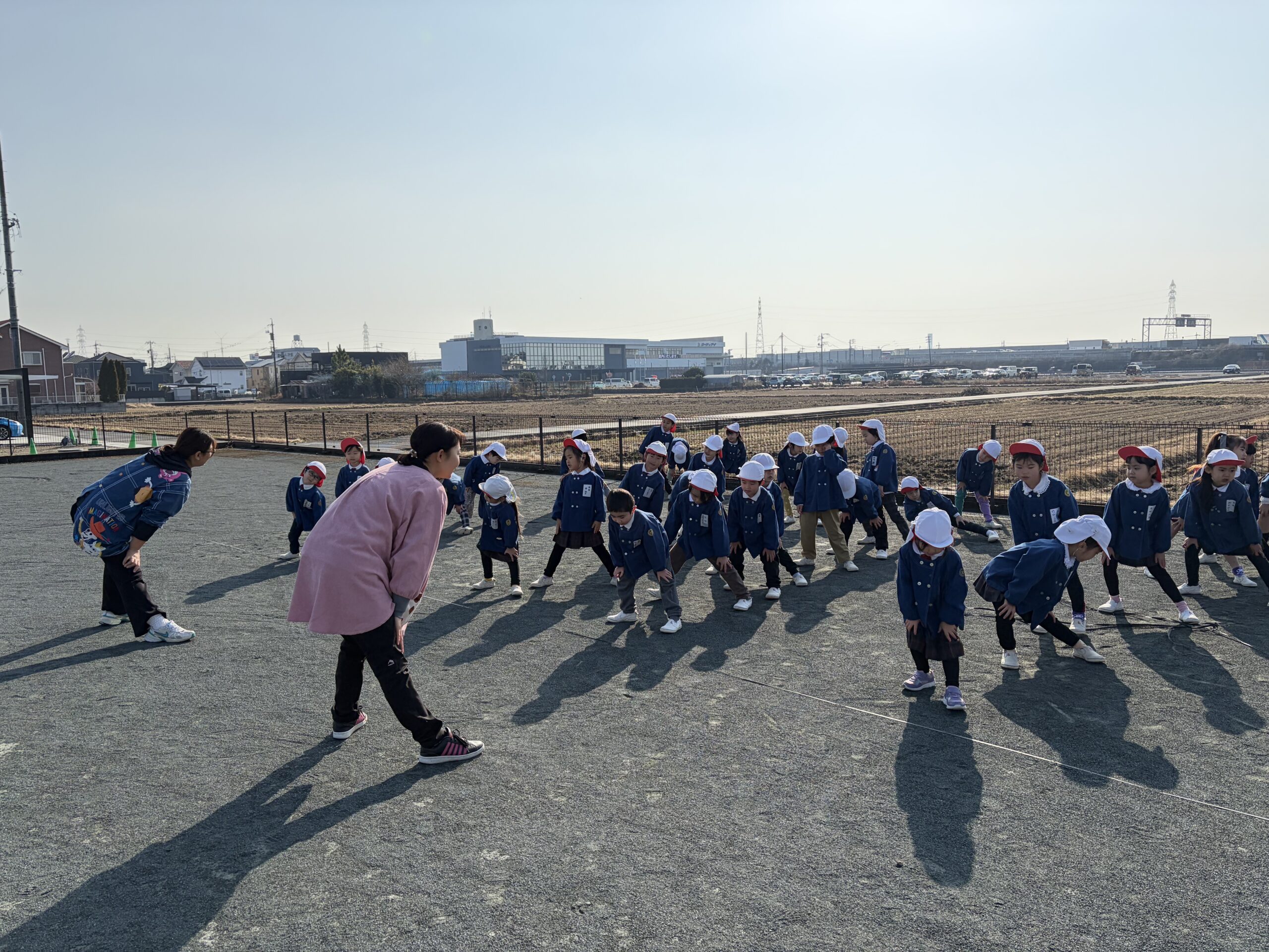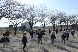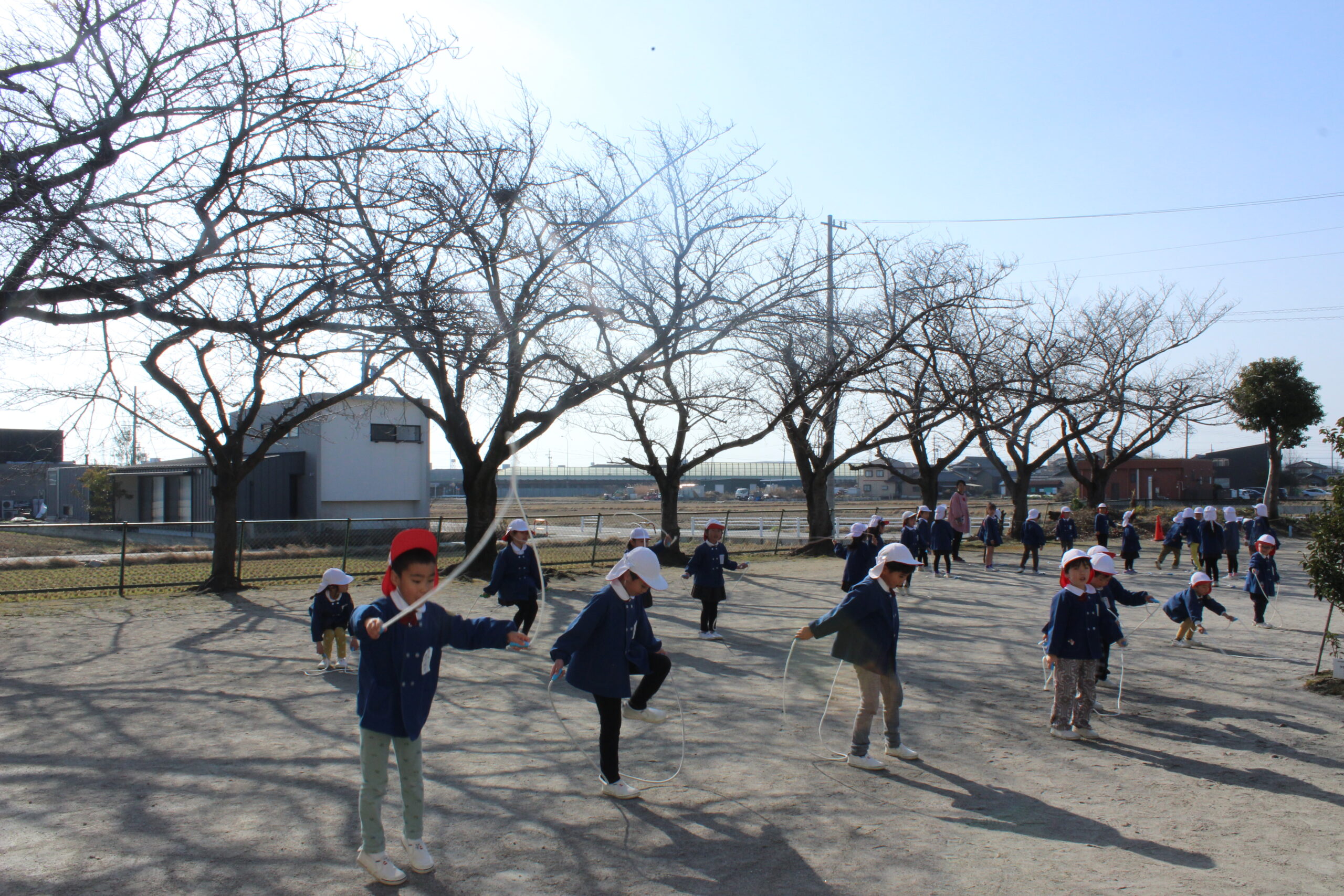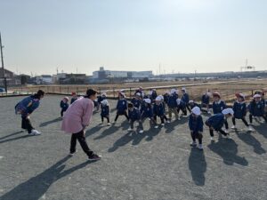 ブログ大和東幼稚園 🌞元気一杯な子どもたち🎶 寒い中でも子ども達は元気一杯です。 月曜日・火曜日は 天気も良く・・・ みんなで体操をして マラソンのスタート。 縄跳びあそびもしました。 みんなで楽しくあそびましょう。