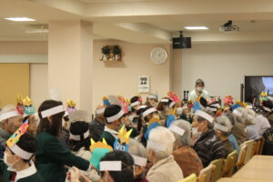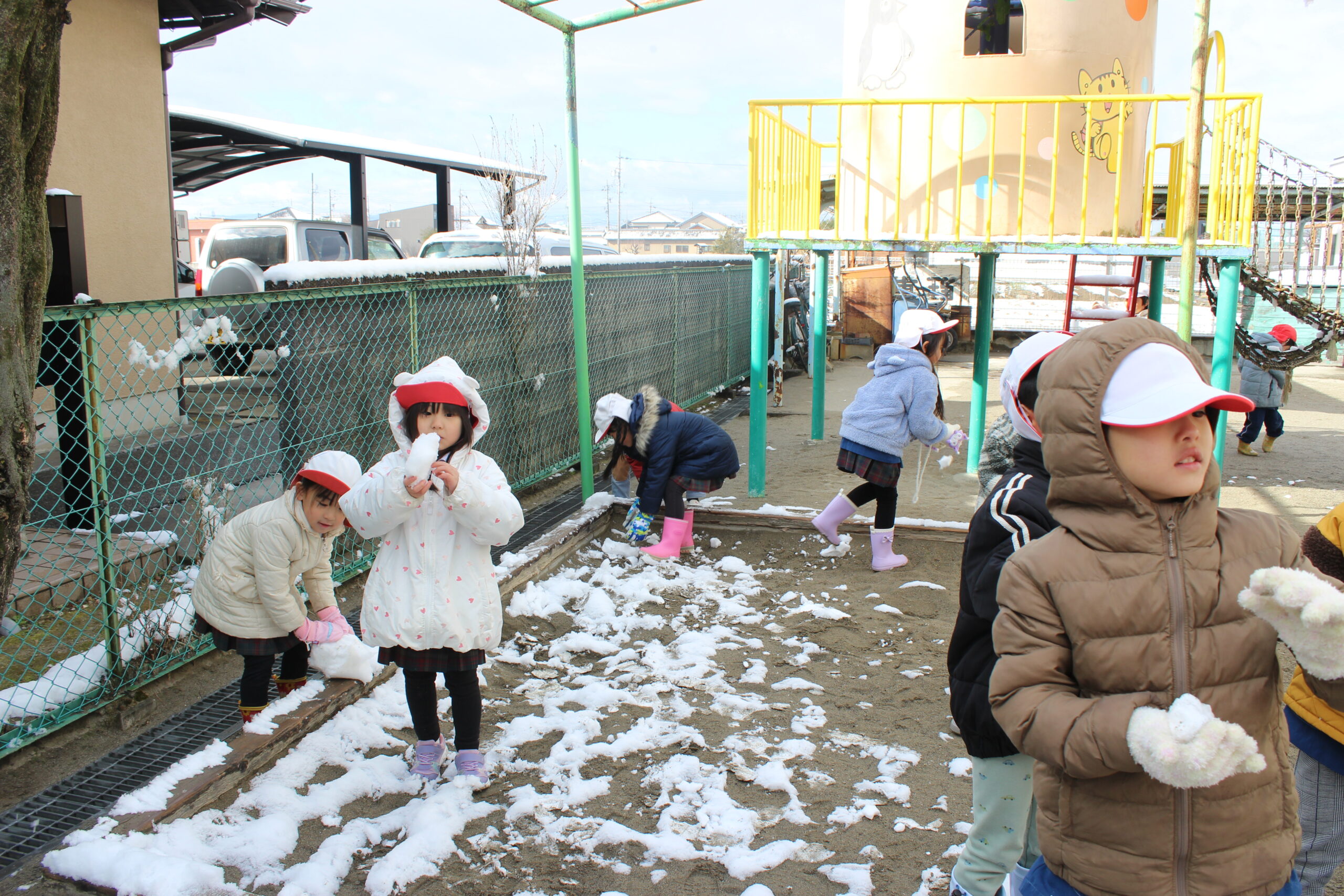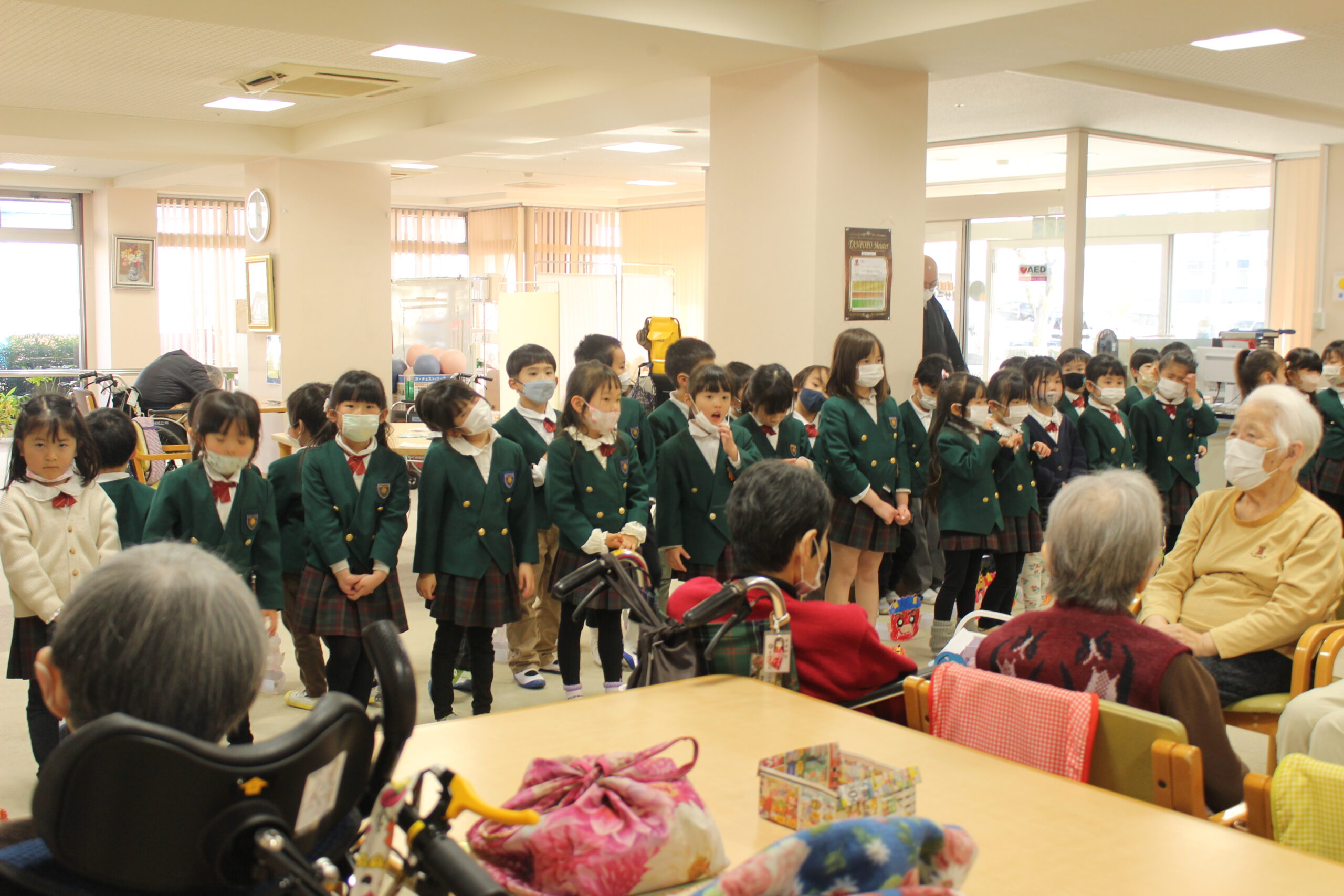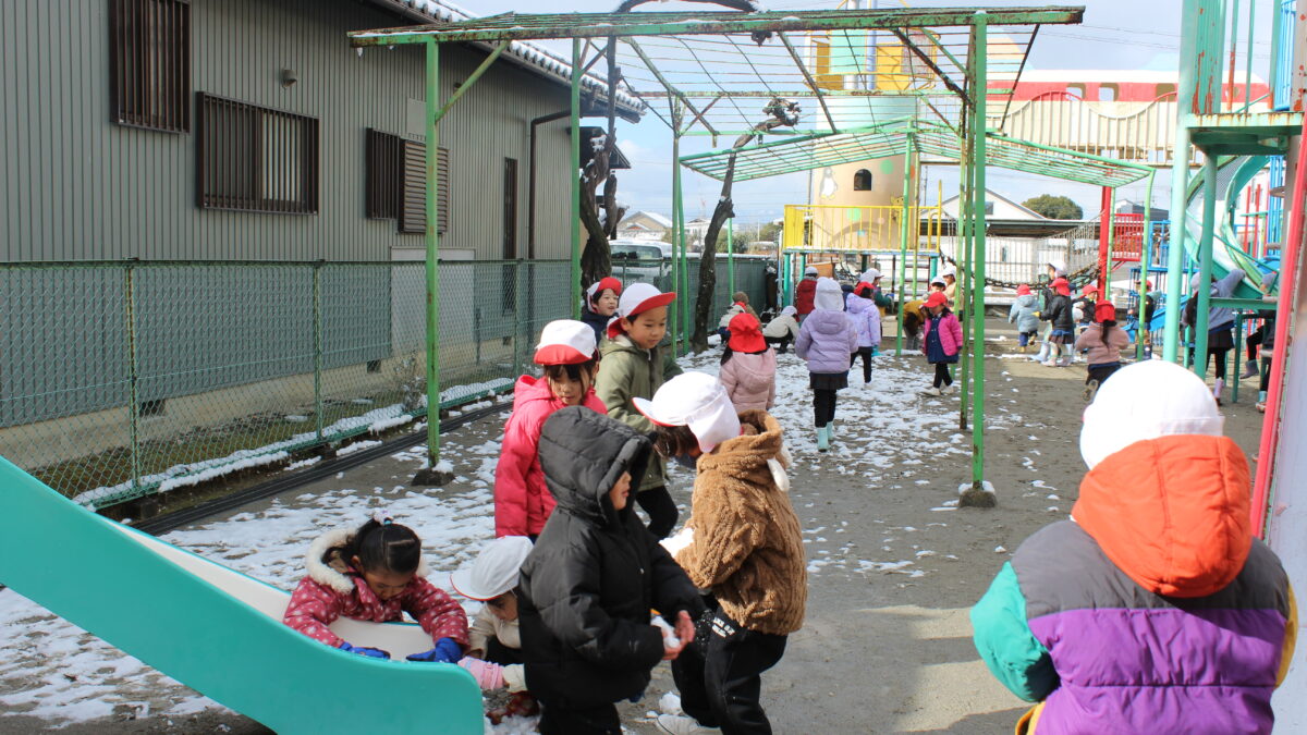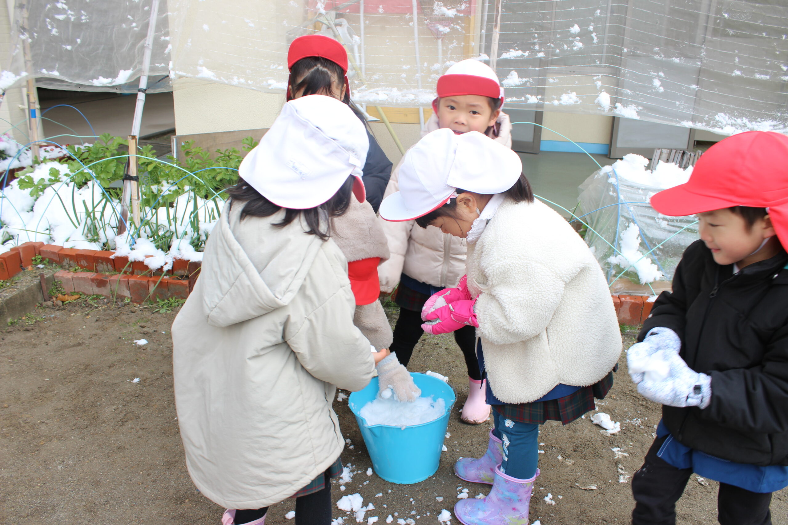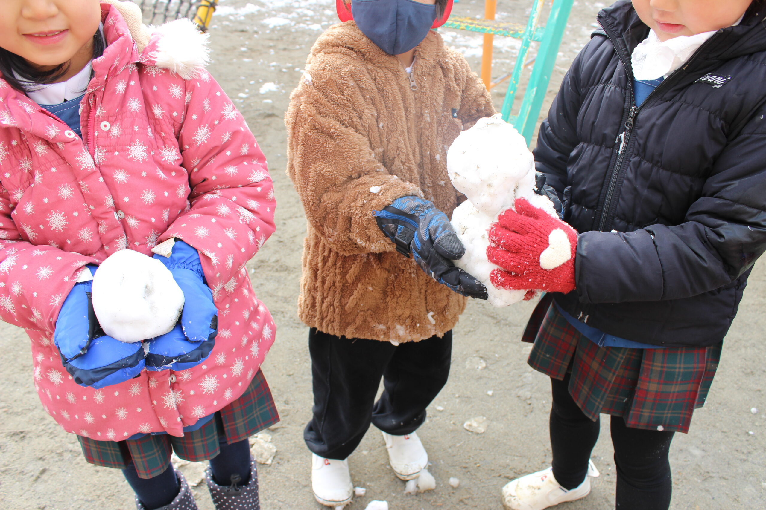 ブログ大和東幼稚園 雪遊び⛄&施設訪問🚌 1月22日(木) 昨日から・・・今年一番の寒さで・・・ 園庭にもうっすら❄❄雪❄が積もって・・・ みんなで雪あそびをしました。 ほんの少しの雪でしたが・・・ ⛄雪ダルマも⛄ みんなでたのしくあそびました。 年長組は、老人施設に慰問に出かけ お爺ちゃん、お婆ちゃんと楽しい時間を すごしました。 👹🎶🎶👹 “豆まき”の歌、掛け声の練習も お爺ちゃん、お婆ちゃんとして 楽しかったね。