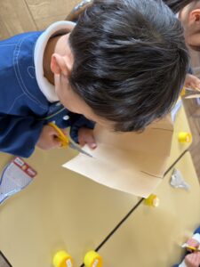ブログ大和東幼稚園 👹豆まきにむけて・・・ 1月23日(金) 今日も・・・寒い一日になりました。 朝から、子ども達も “寒いね”“寒いよ”とテラスにて 連呼していました。 各保育室では・・・ 園内豆まきに向けて、升や鬼のお面を 作りました。 👹“鬼”怖いねと話をしながらも 頑張って作っていました。