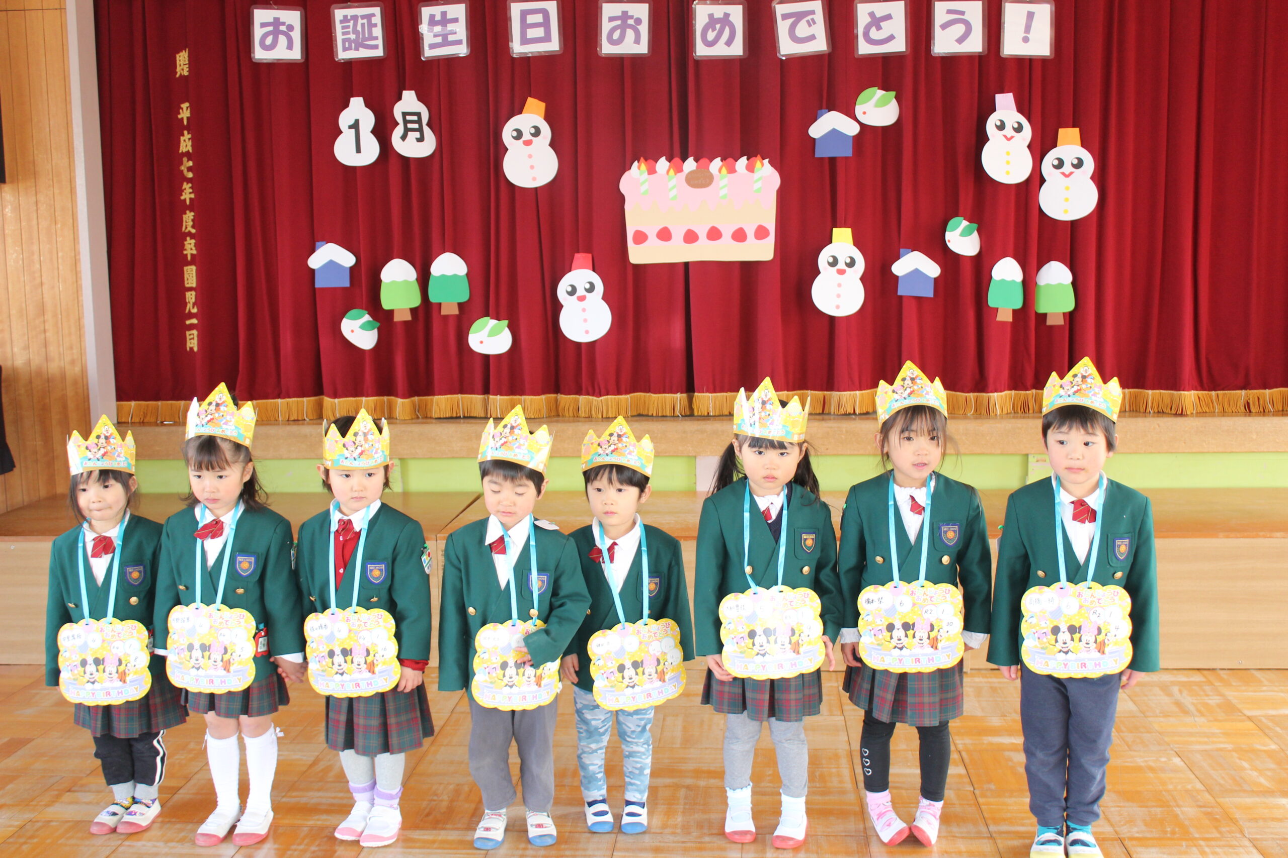 ブログ大和東幼稚園 🎂1月のお誕生日会🕯🕯 1月27日(火) 今日は、1月生まれの お誕生日会を行いました。 1月生まれのお友達。 ひとつ大きくなったね。 お誕生日おめでとう!! みんなで歌を歌ったり、豆まきに向けて 掛け声の練習を行いました。