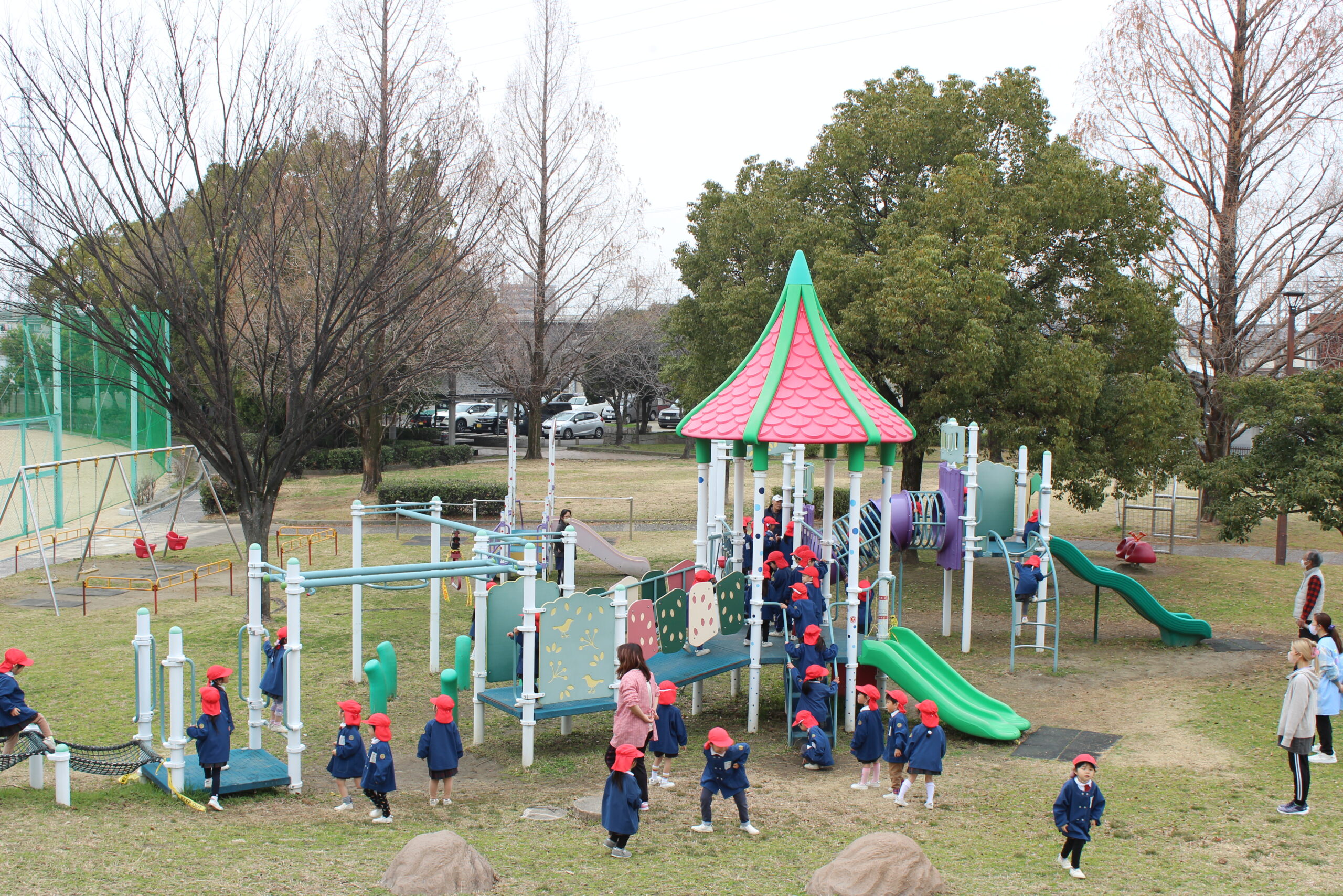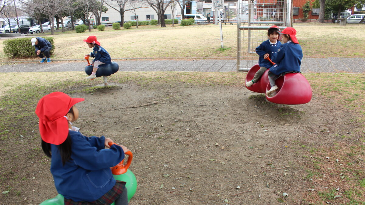 ブログ大和東幼稚園 🌞公園であそびました🚌 2月27日(金) 今日は、年少組が 多加木公園へあそびに出かけました。 園庭にはない遊具や 大きな公園で 子ども達は・・・・笑顔いっぱい 思い切り遊び 楽しい思い出ができましたね。