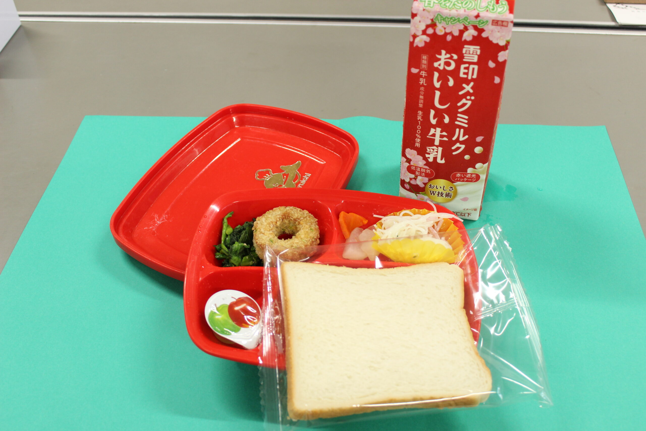 ブログ大和東幼稚園 あっという間に・・・ 4月10日(金) 今日は、朝から あいにくの雨☔の一日でした。 そして・・・ あっという間に今週も終わりです。 一日保育も始まり 疲れがでてくると思います。 土、日ゆっくりと過ごし 月曜日からも 笑顔いっぱい頑張りましょう。 今週の園庭での戸外あそびの様子です。 本日の給食。 🍞パン食でした。 牛乳も飲みました。