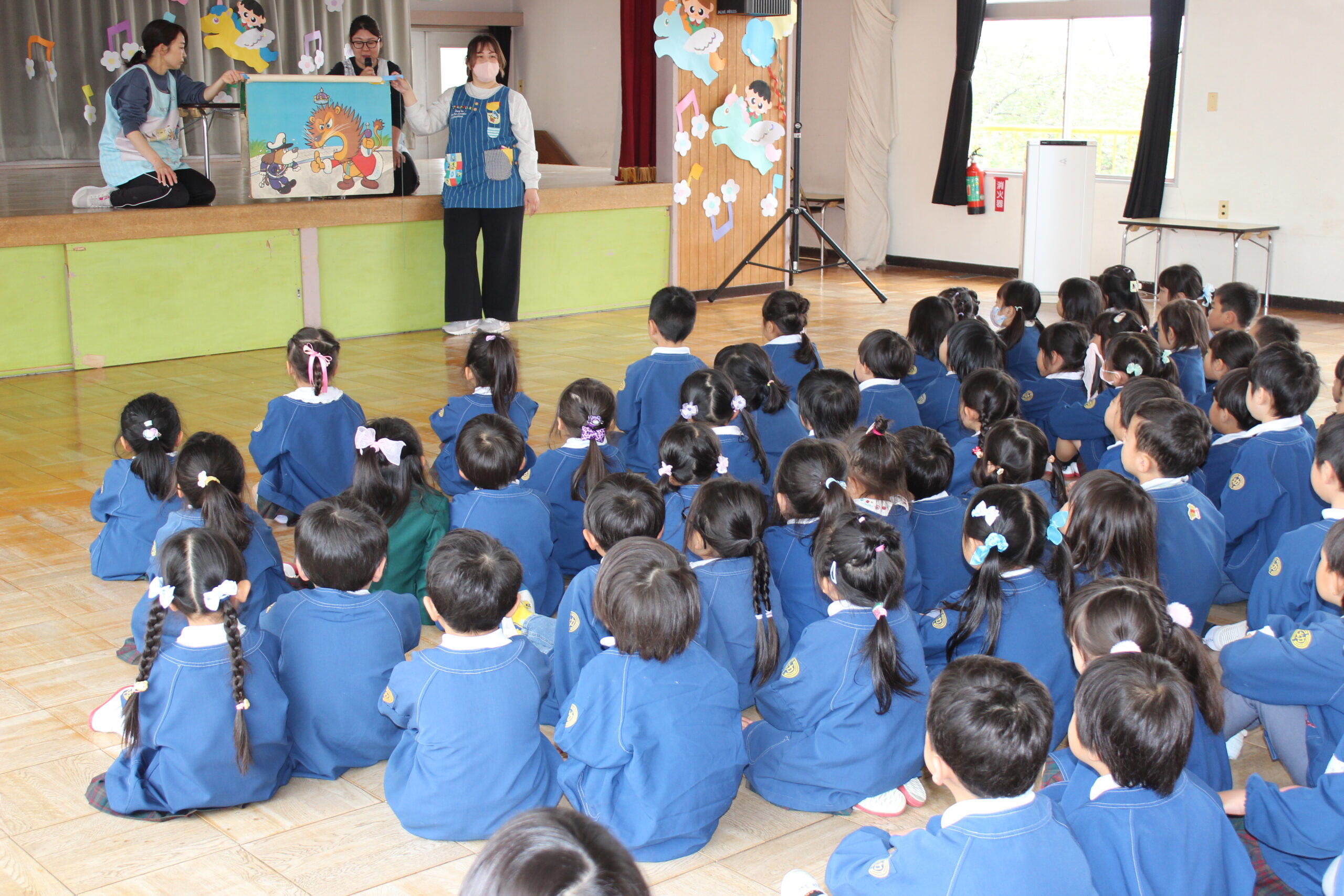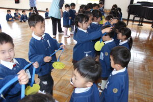 ブログ大和東幼稚園 新入園児歓迎会 4月15日(水) 今日は、新入園児歓迎会を 遊戯室にて行いました。 年長さんが、年少さんの手をとり 優しく声をかけてあげる様子が とてもたくましく感じました。 入園おめでとう! 大型紙芝居をみて 年中さんも含め みんなで楽しい時間を過ごすことができました。